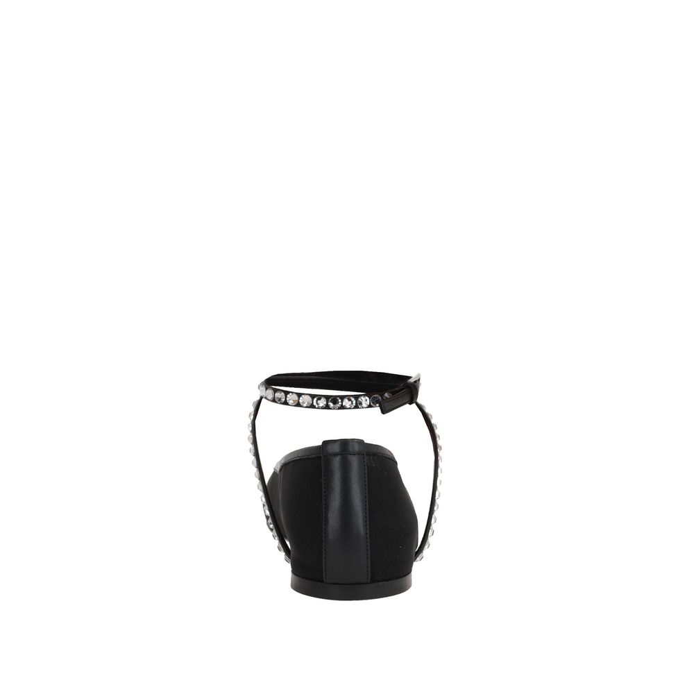 Amina Muaddi Black Fabric Ballet Flats