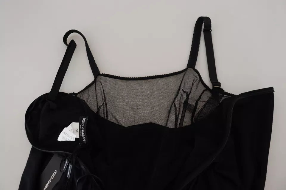 Dolce & Gabbana Black Sheath Midi Gown Wool Wrap Dress