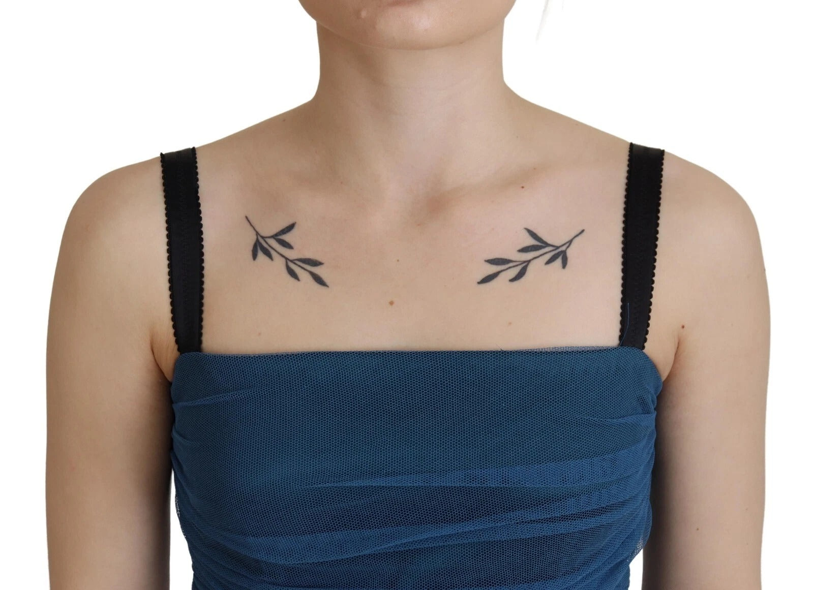 Gorgeous brand new with tags, 100% Authentic Dolce & Gabbana Blue ruched tulle sleeveless bodycon midi dress.