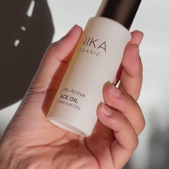 INIKA Organic Phyto-Active Face Oil is high in Vitamins A, E and K plus essential fatty acids Omega-3, 6 and 9 for optimal nourishment and reinforcement of the natural barrier.