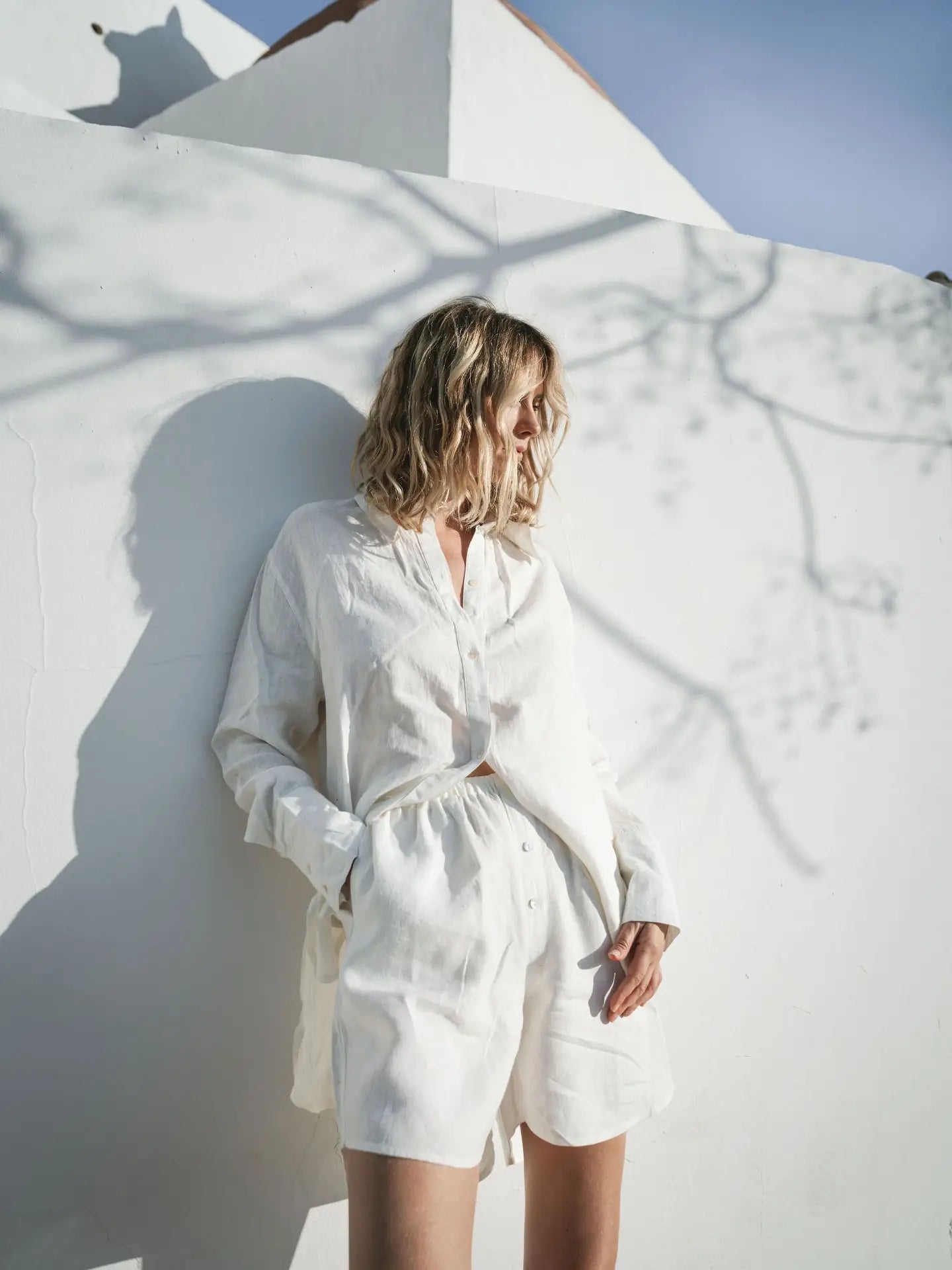 The new elegant boxer shorts. Crafted from breathable softly stonewashed handwoven linen. A relaxed fit with side split and elasticated waistband.