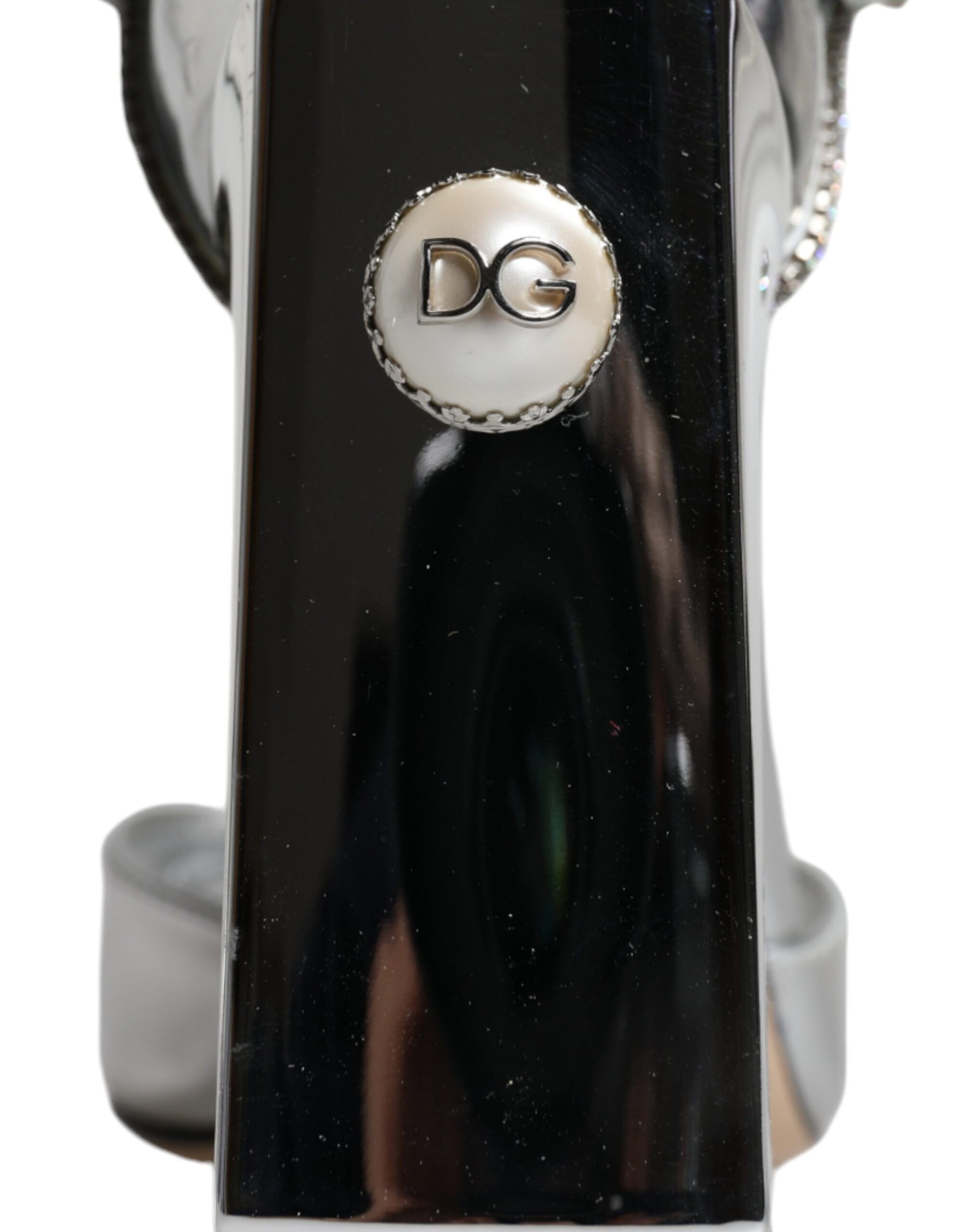 Dolce & Gabbana Silver Leather T-strap Heels Sandals Shoes