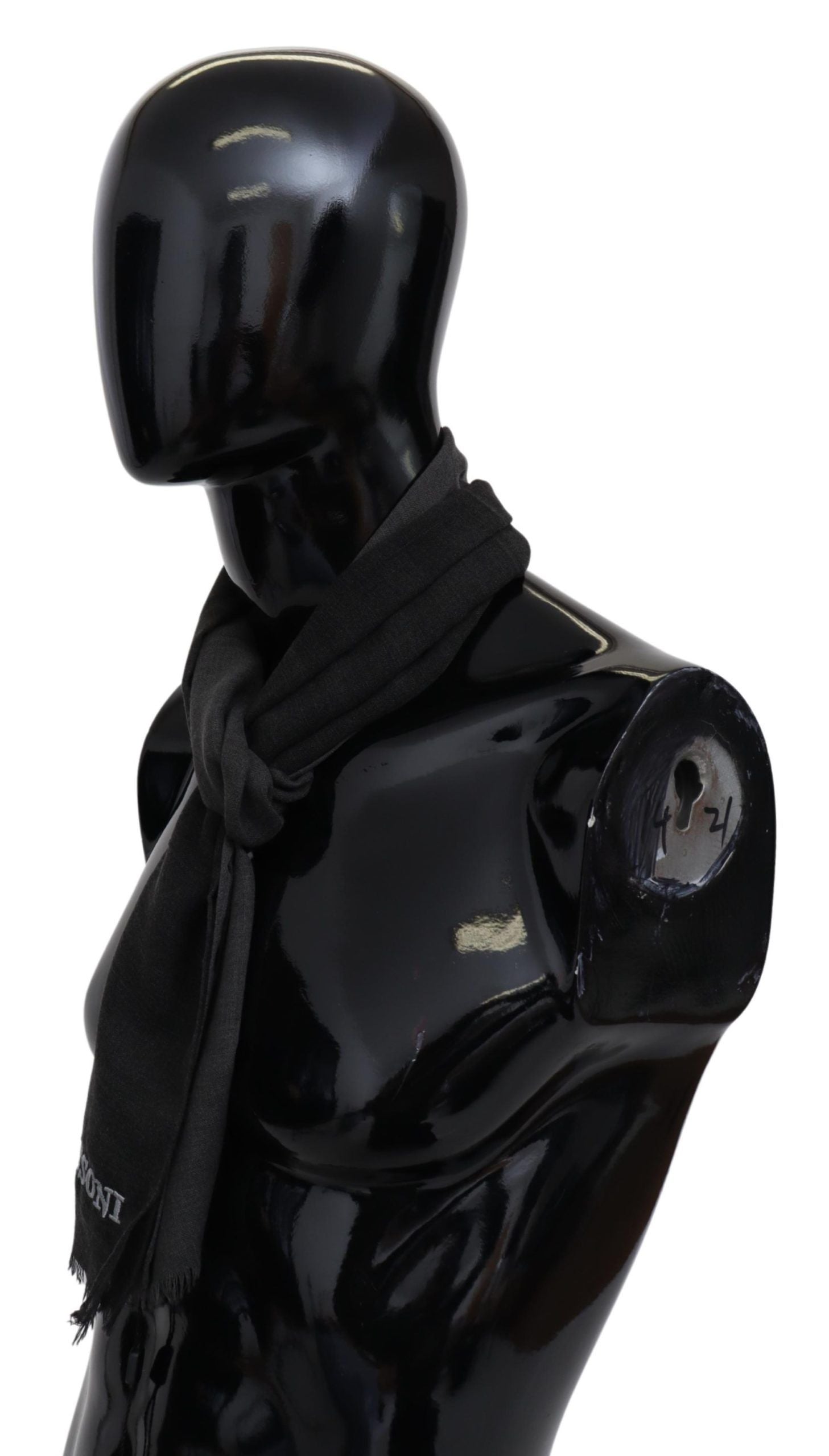Missoni Gray Wool Unisex Neck Wrap Shawl Fringes Logo Scarf