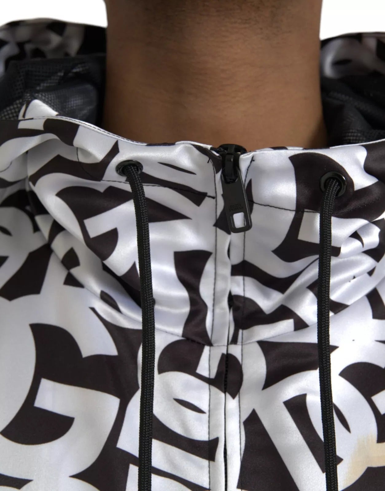 Dolce & Gabbana White Black Logo Hooded Full Zip Bomber Jacket