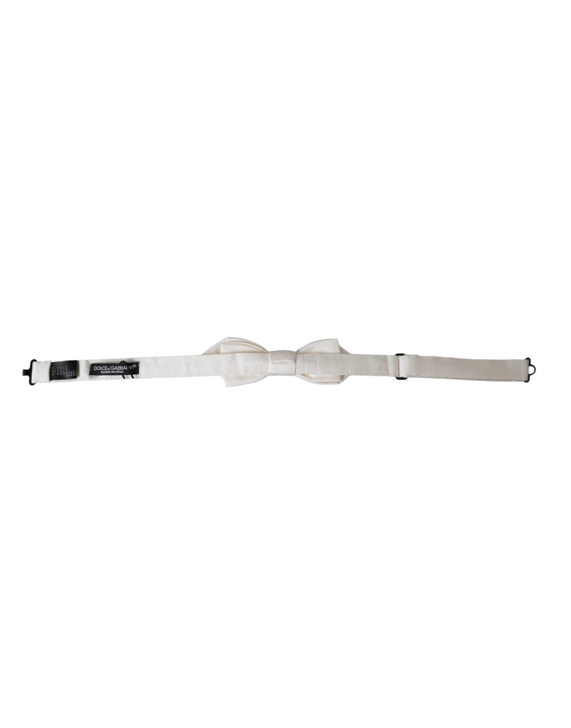 Dolce & Gabbana White Silk Adjustable Neck Men Papillon Bow Tie